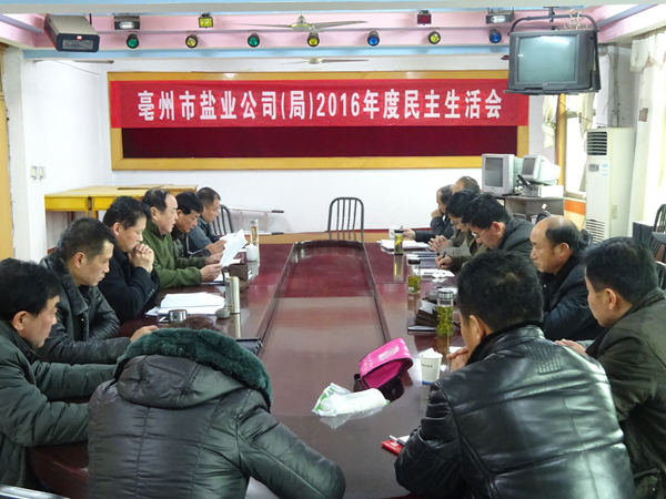 根據(jù)省公司黨委統(tǒng)一部署,1月18日亳州市公司黨委召開2016年度民主生活會(huì),市公司黨委書記李文俊主持會(huì)議并講話,市公司董事長(zhǎng)、經(jīng)理、局長(zhǎng)榮立華出席會(huì)議,三縣公司黨政主要負(fù)責(zé)同志參加民主生活會(huì)。